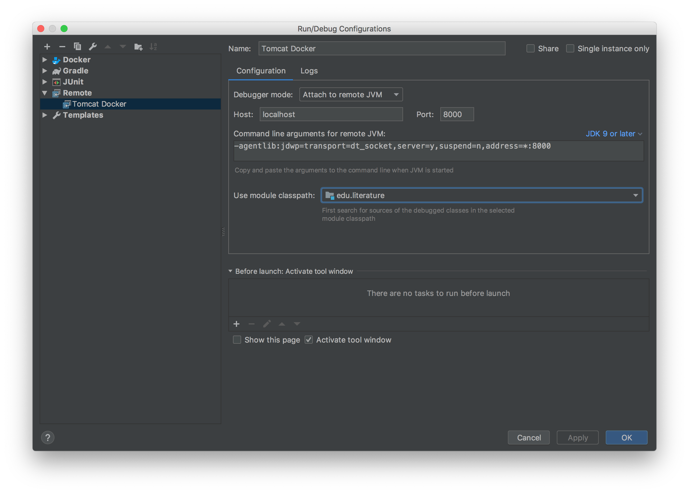 command: "/usr/local/tomcat/bin/catalina.sh jpda run"