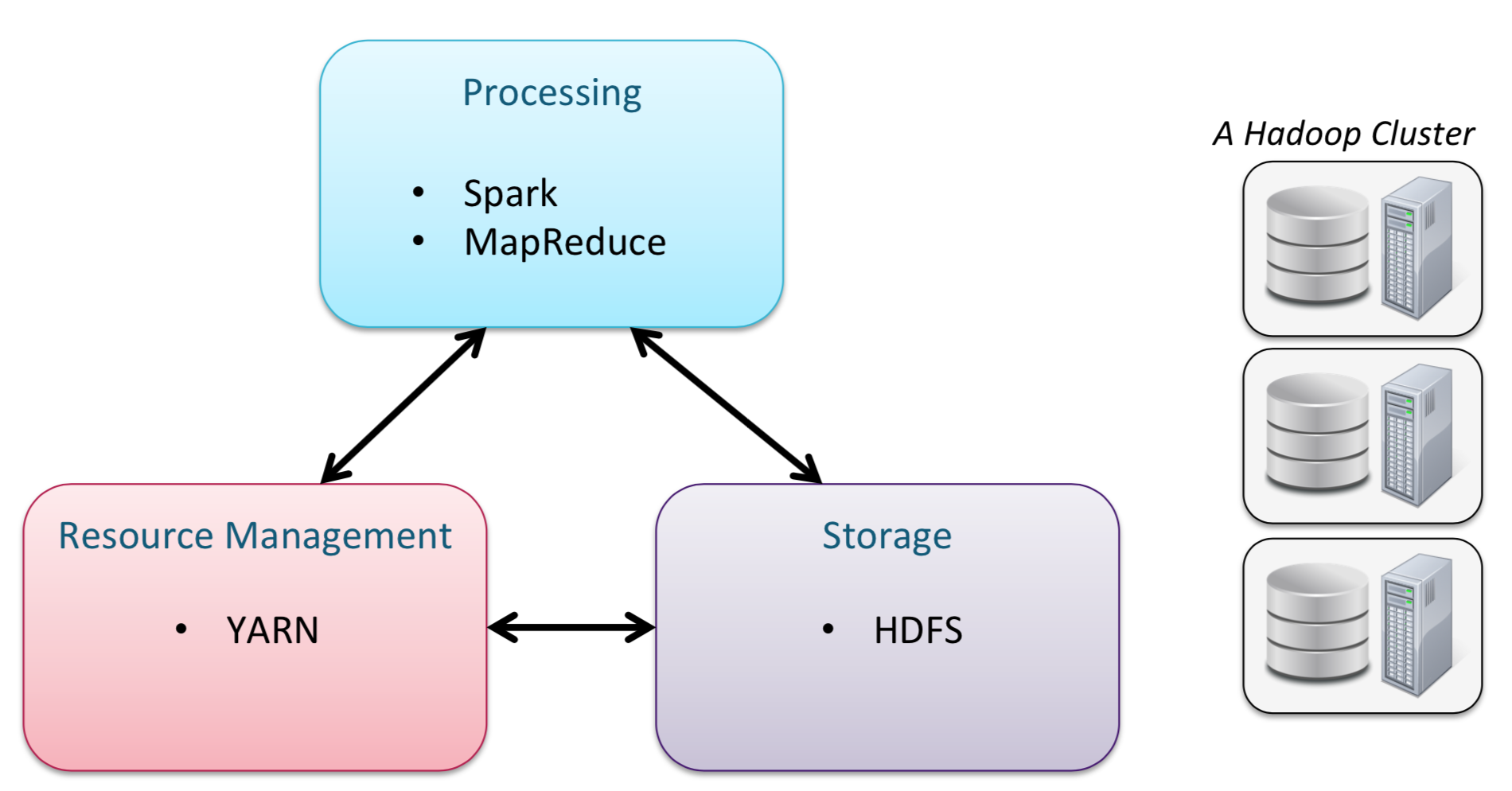 - Hadoop Cluster:多台计算机组成一个 Cluster,每台计算机称为 Node,Node 分为 MasterNode 和 WorkerNode